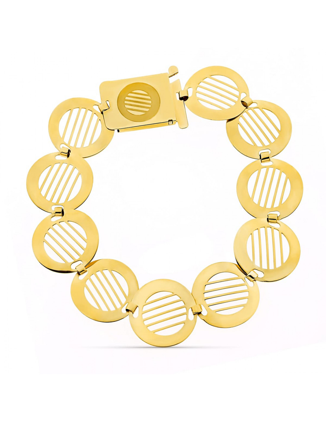 18K PULSERA ORO AMARILLO ESLABONES CALADOS HILOS. ANCHO 16 MM LARGO 18.5 CM