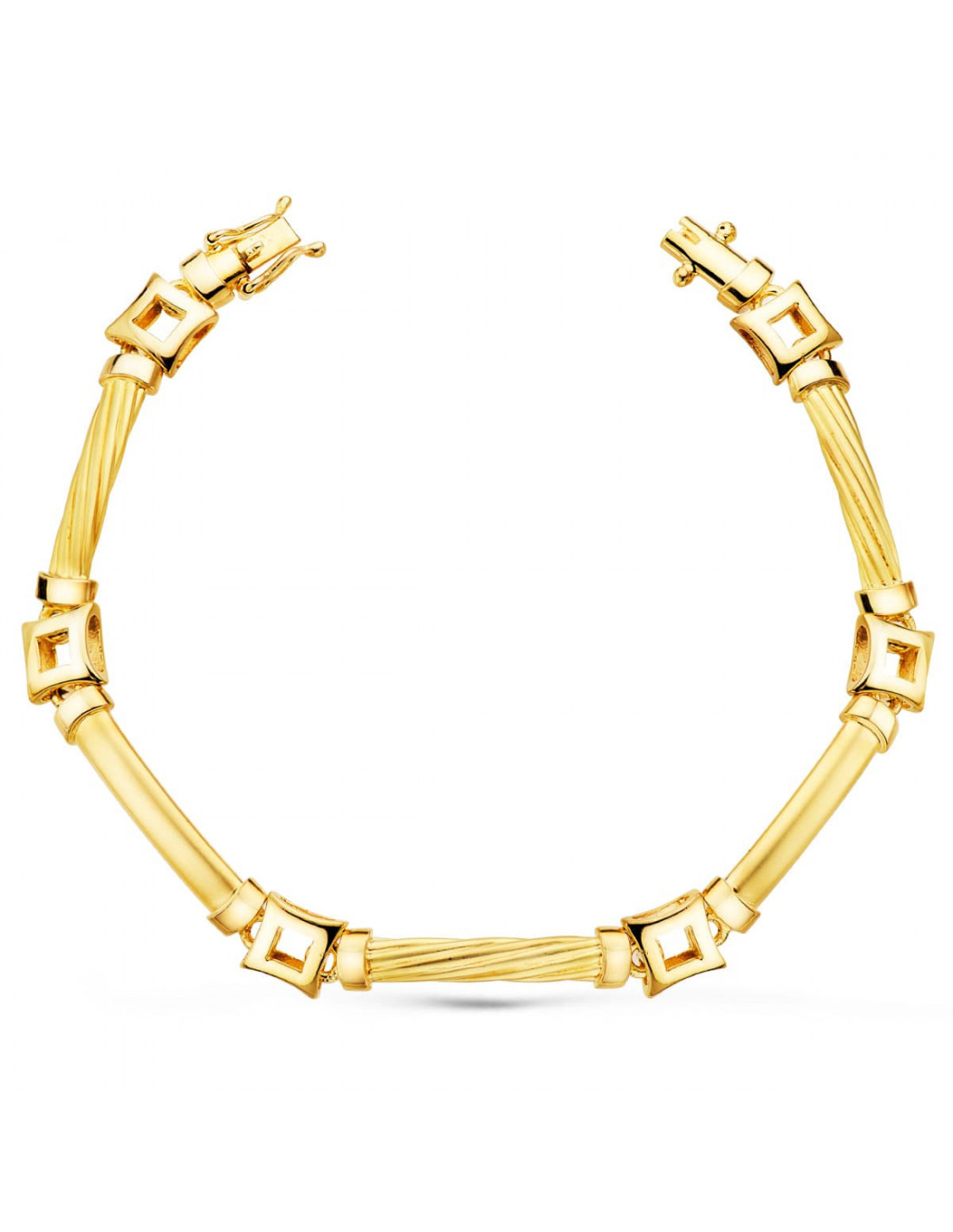 18K PULSERA ORO AMARILLO ESLABONES Y CUADRADOS ANCHO 8 MM LARGO 20 CM