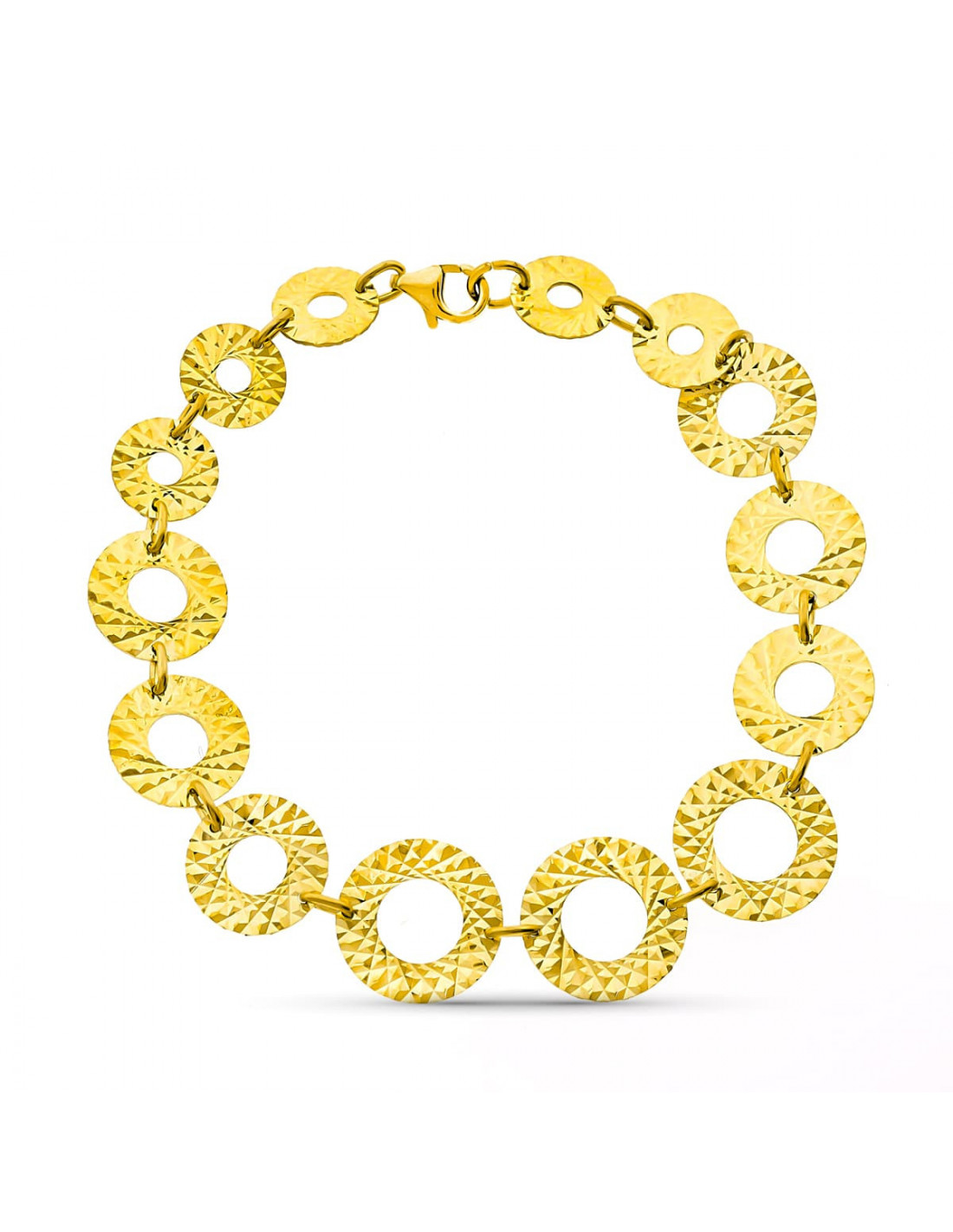 18K PULSERA ORO AMARILLO CIRCULOS TALLADOS. ANCHO 13 MM LARGO 18 CM