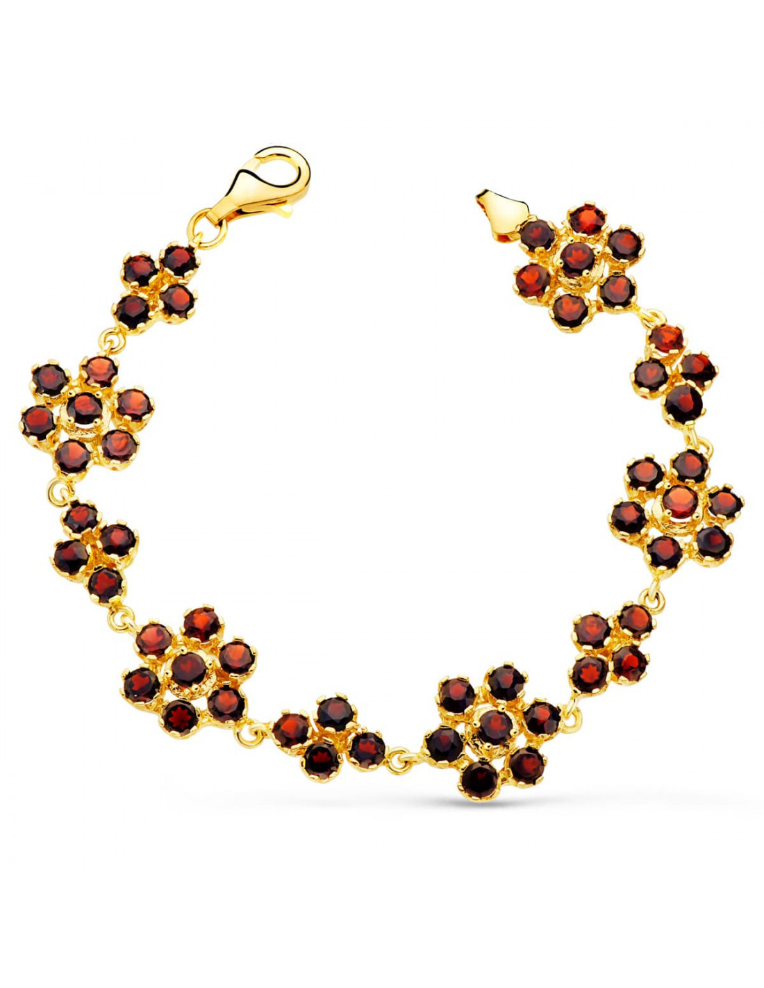 18K PULSERA ORO AMARILLO ARTICULADA DE GRANATES ENGASTADAS. 19.5 CM