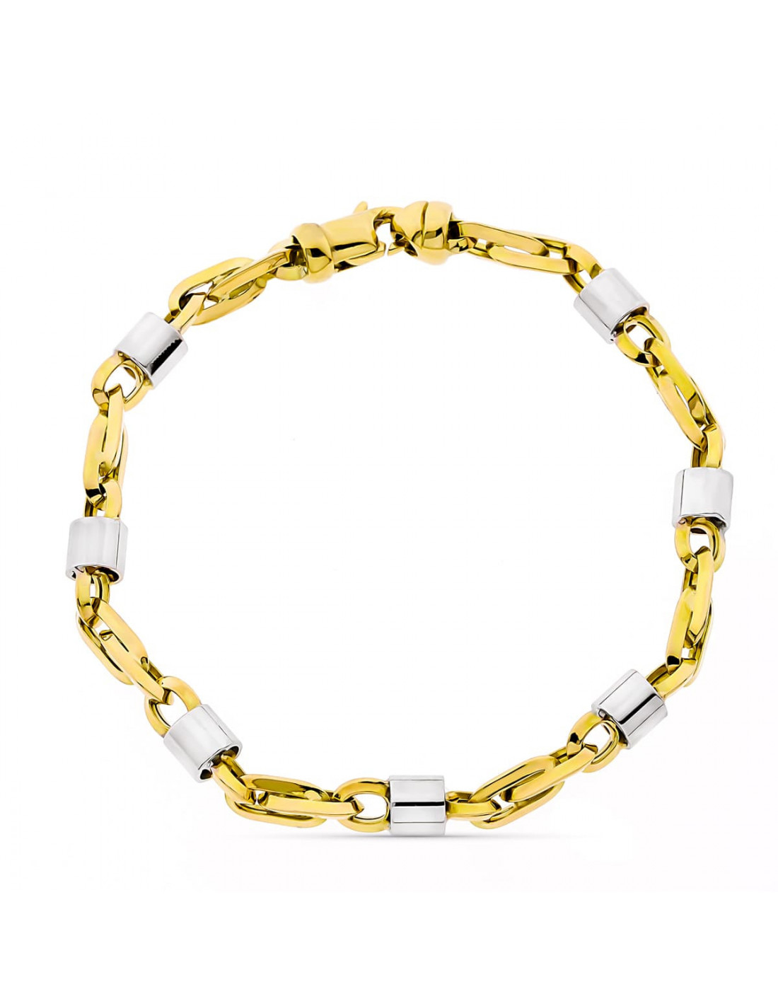 18K PULSERA ORO BICOLORO ESLABONES ANCHO 5 MM LARGO 19.50 CM