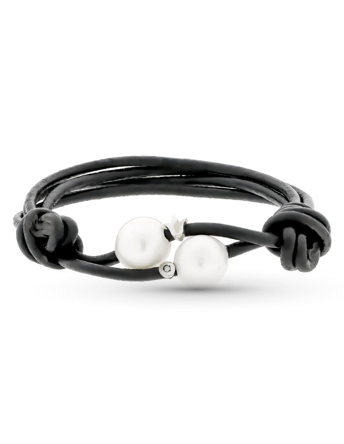 18K PULSERA CUERO PERLA Y DIAMANTES TALLA BRILLANTE