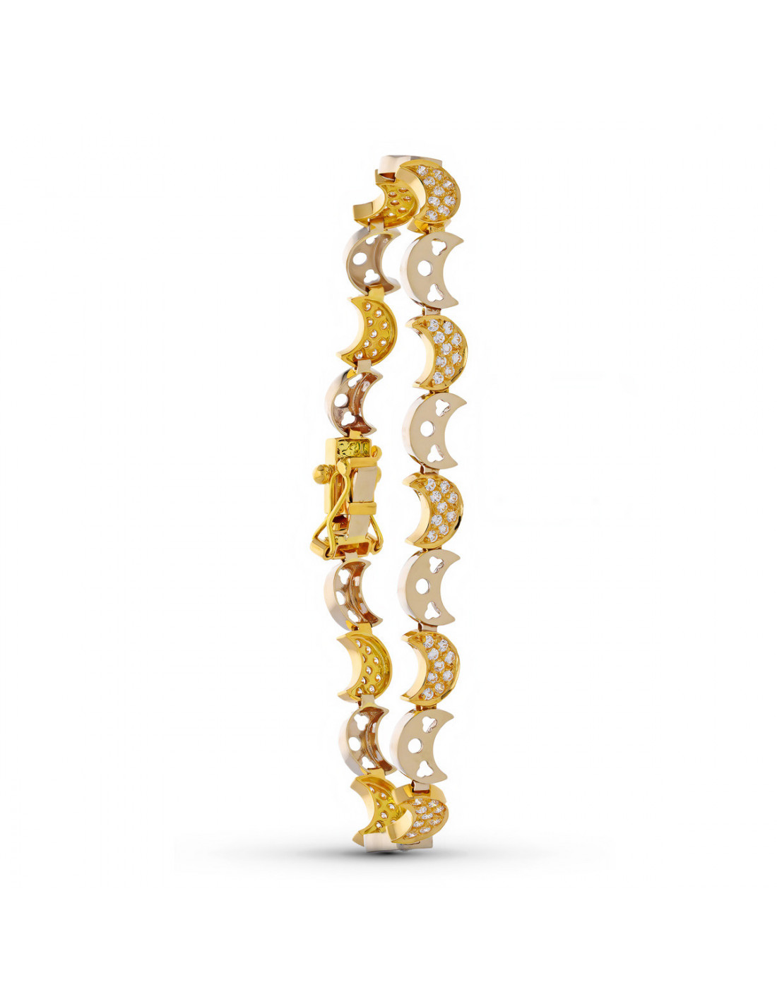 18K PULSERA ORO BICOLOR CIRCONITAS MEDIA LUNAS