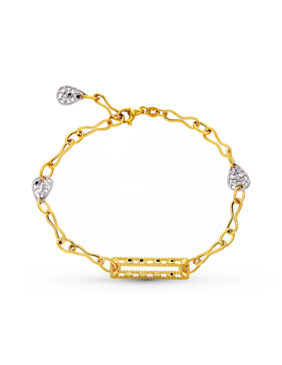 18k PULSERA ORO BICOLOR MOTIVOS Y HOJAS