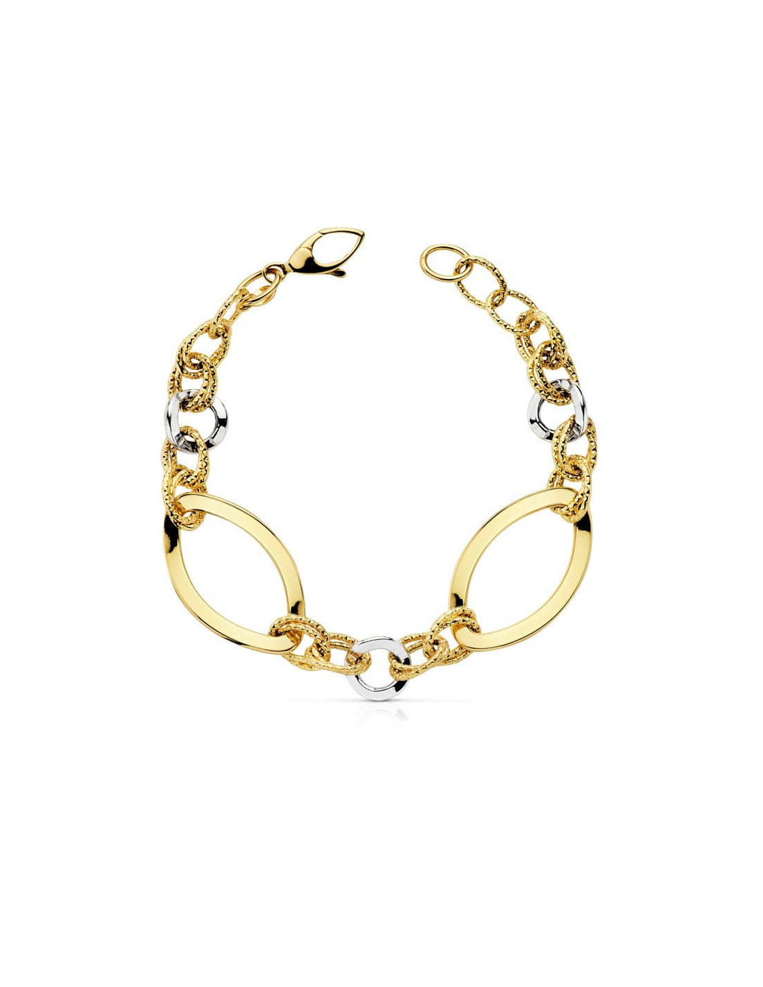 18K PULSERA BICOLOR HUECA ANCHO 18 MM LARGO 19 CM