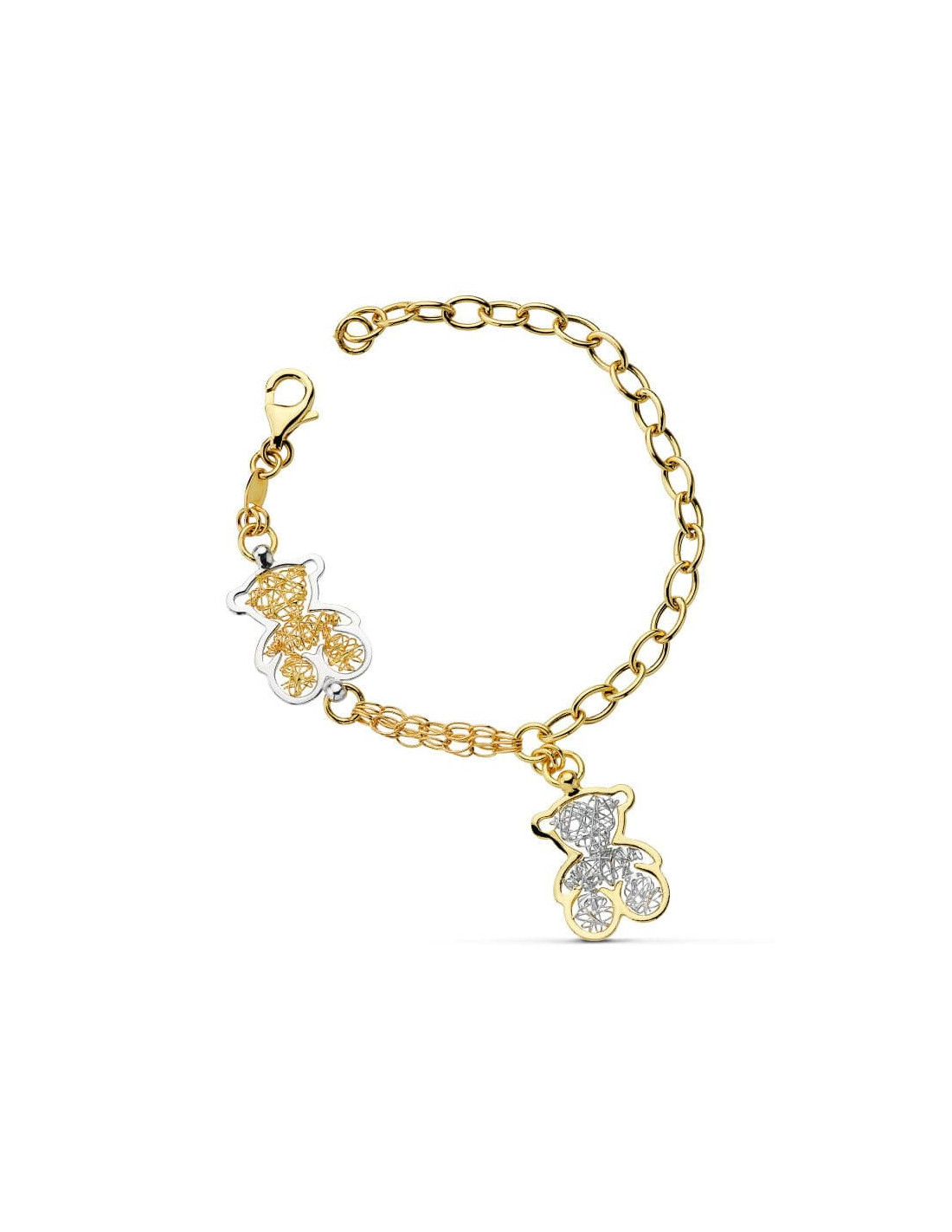 18K PULSERA BICOLOR OSOS Y ESLABONES 19CM