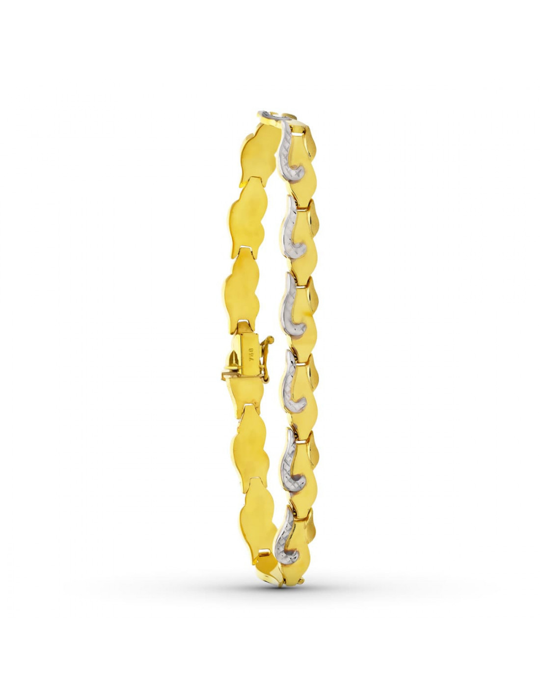 18K PULSERA ORO BICOLOR ESTAMPACION 20CM