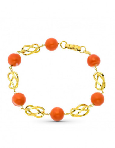 18K PULSERA ORO AMARILLO JAULAS Y CORAL FINO JAPONES 10.5 MM 20 CM