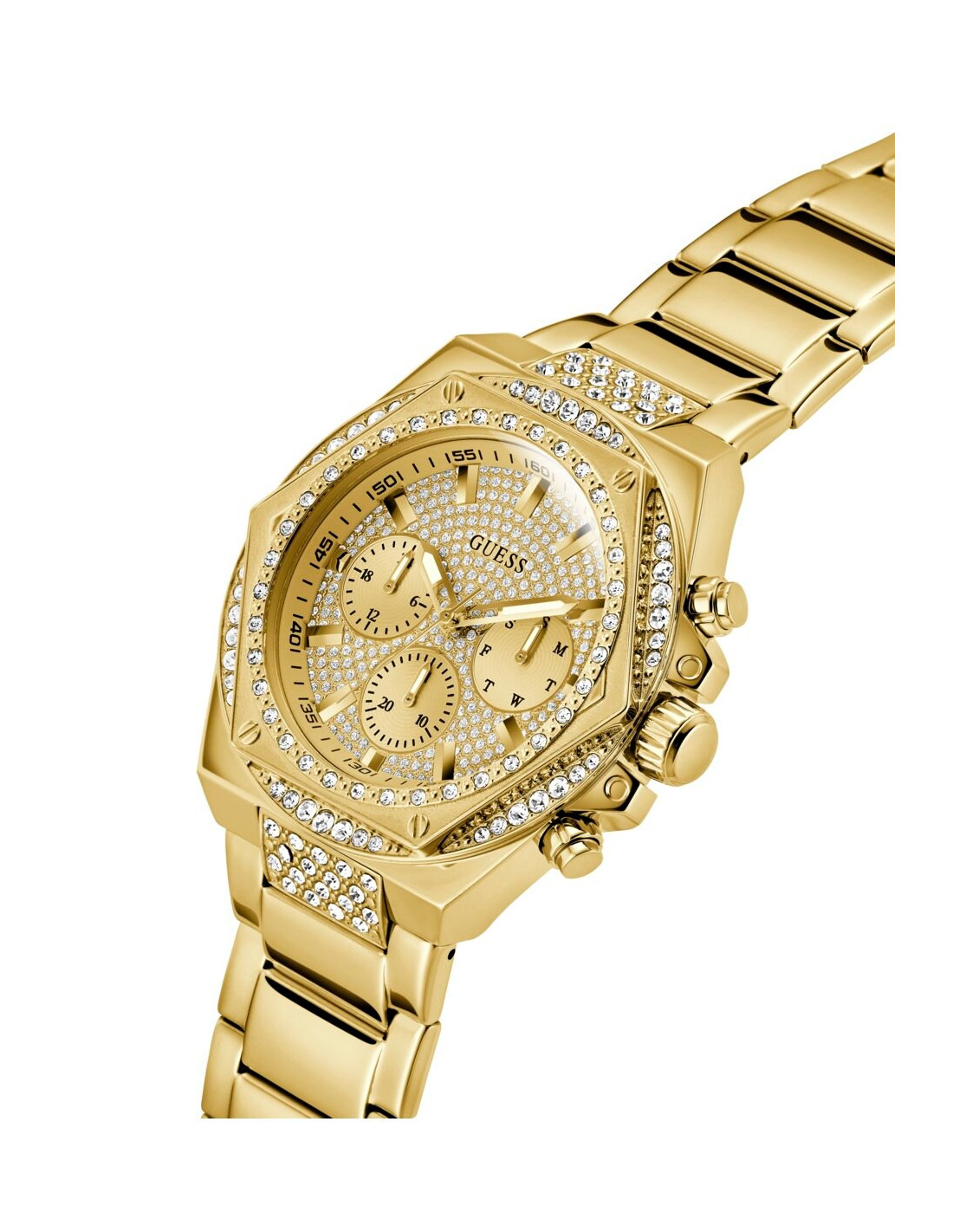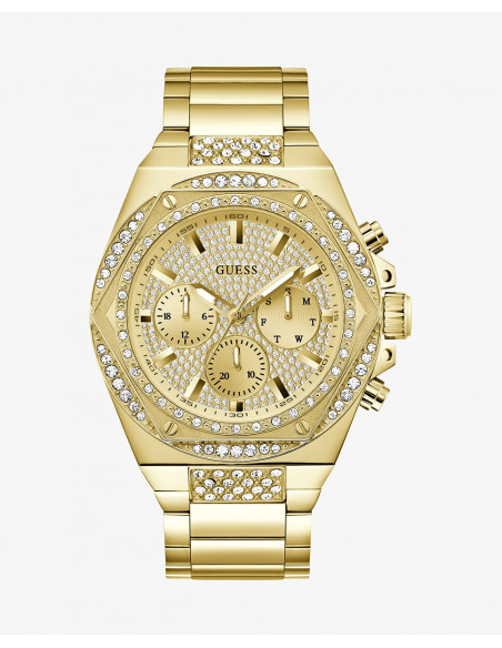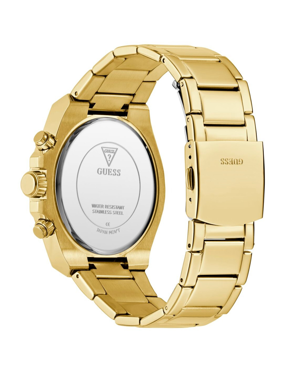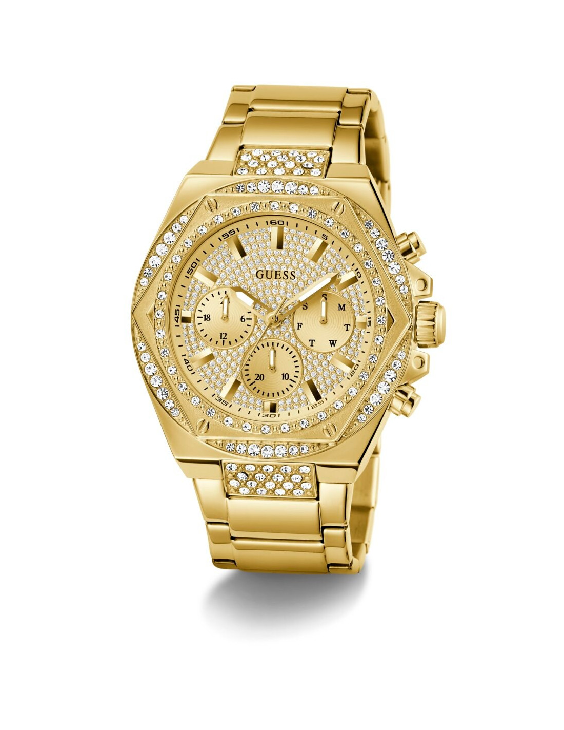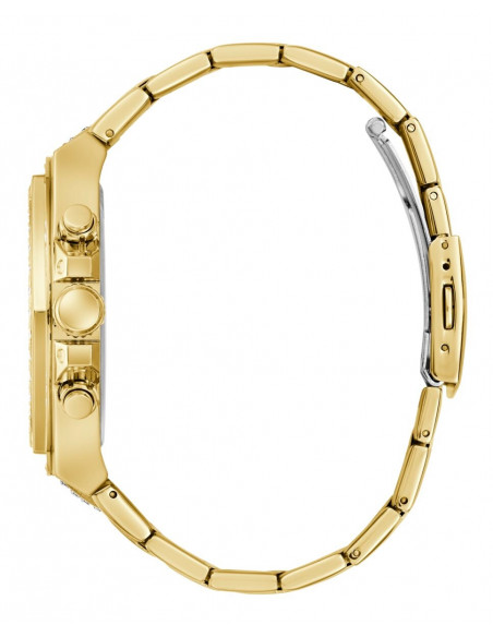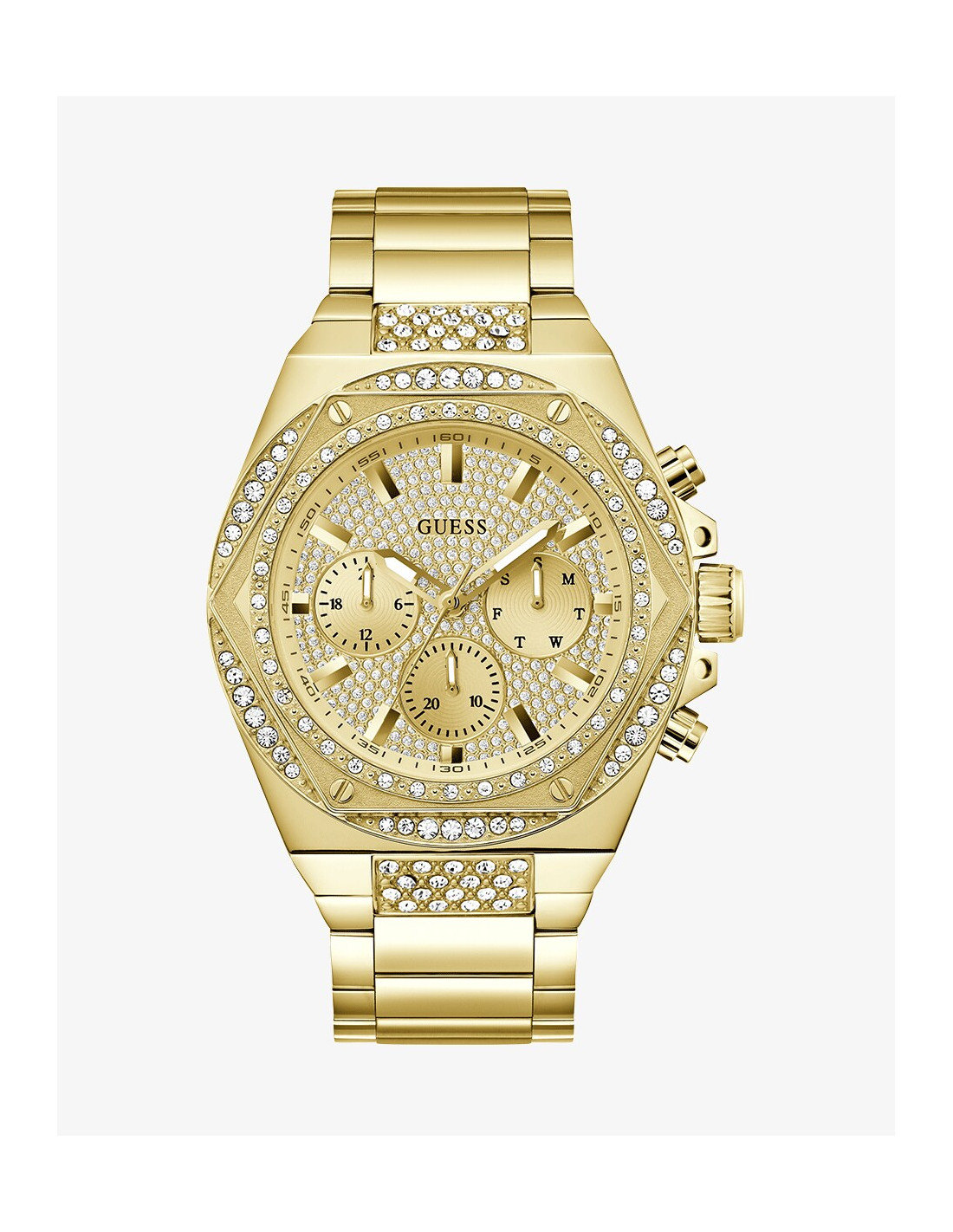 Reloj de hombre Fury GW0899G2 de acero y correa dorada. Reloj de hombre Guess con caja de acero reciclado brillante 47mm dorado con detalle de cristales, esfera multifunción de rayos de sol con cristales blancos, brazalete de acero brillante dorado con eslabón de cristales. Se parte de la nueva realeza con el diseño extravagante y elegante del FURY. Este reloj es la combinación perfecta de lujo y sofisticación, ideal para quienes dominan el estilo con majestuosidad.