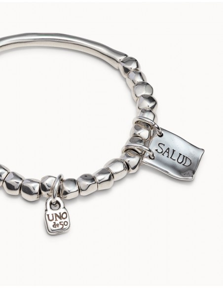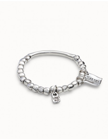 Pulsera de cuentas y pieza tubular de metal bañado en plata. Característico de UNOde50, realizada 100% de manera artesanal, made in Spain.