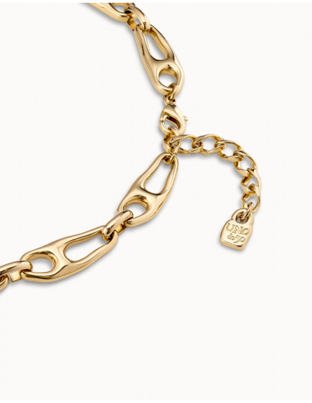Una joya atemporal para tener siempre disponible. Su diseño corto y en forma de eslabones orgánicos pequeños en metal bañado en oro, te convertirá en el centro de todas las miradas. Una joya que podrás lucir en cualquier ocasión. Diseñada por UNOde50, hecha en España y realizada siguiendo un proceso 100% artesanal.